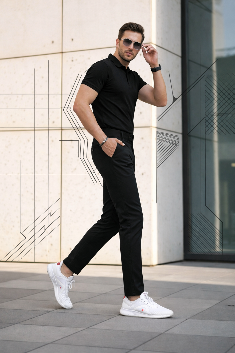 Men’s Premium Black Double Button Slim Fit Pants – Stylish Casual & Formal Wear